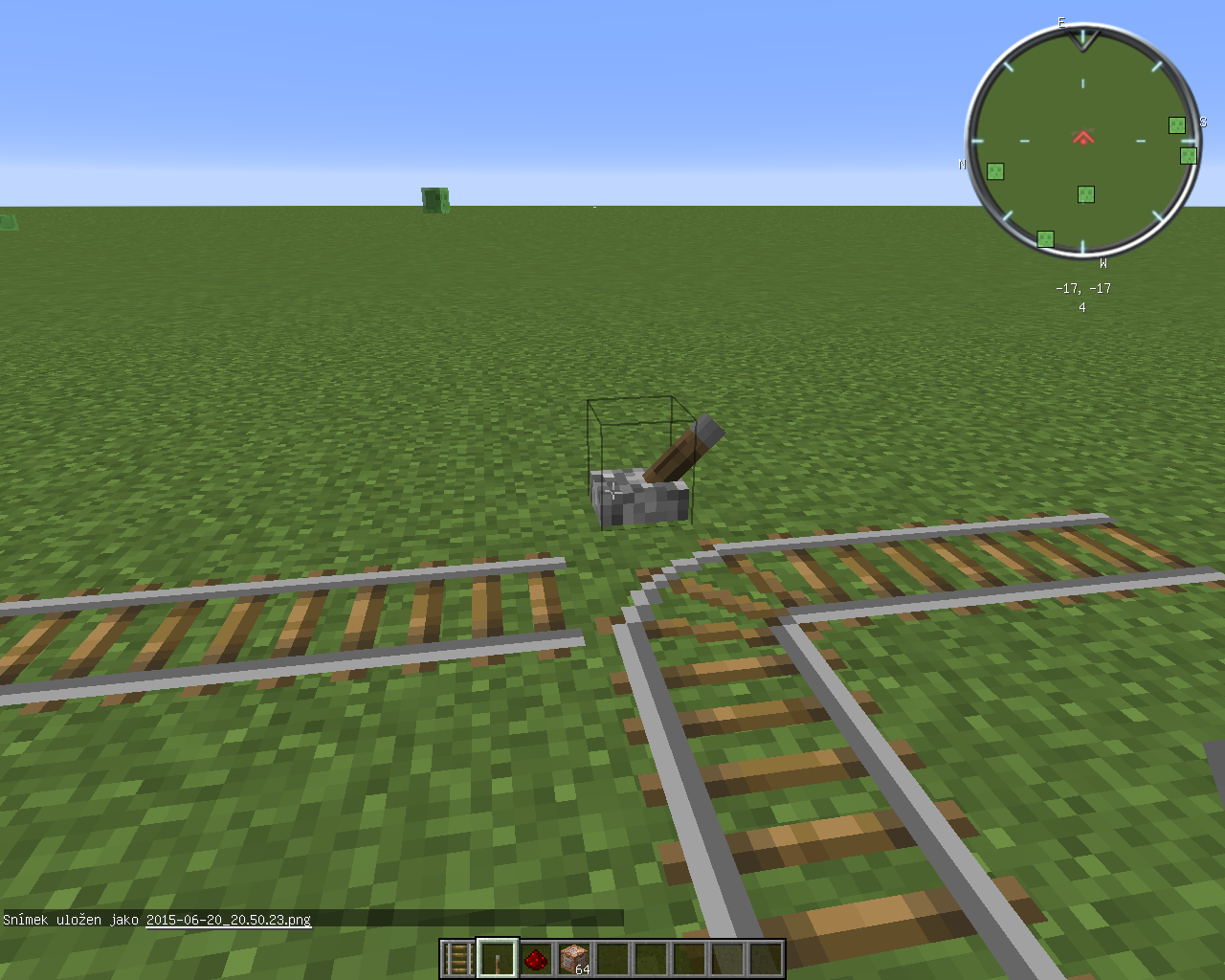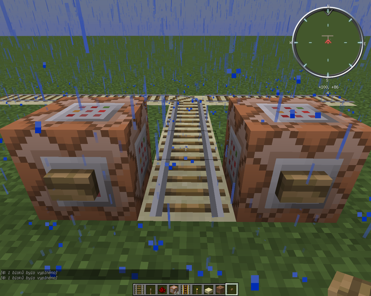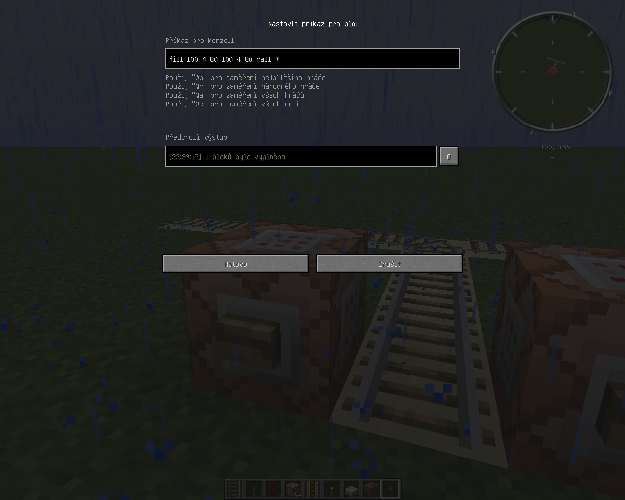 fill 100 4 80 100 4 80 rail 7Na CB umístíme tlačítko. Přitom je třeba držet Shift, jinak otevřeme menu CB. Stisknutím tlačítka se provede příkaz v CB, tedy kolej na souřadnicích 100 4 80 bude nastavena ve směru jih-západ.