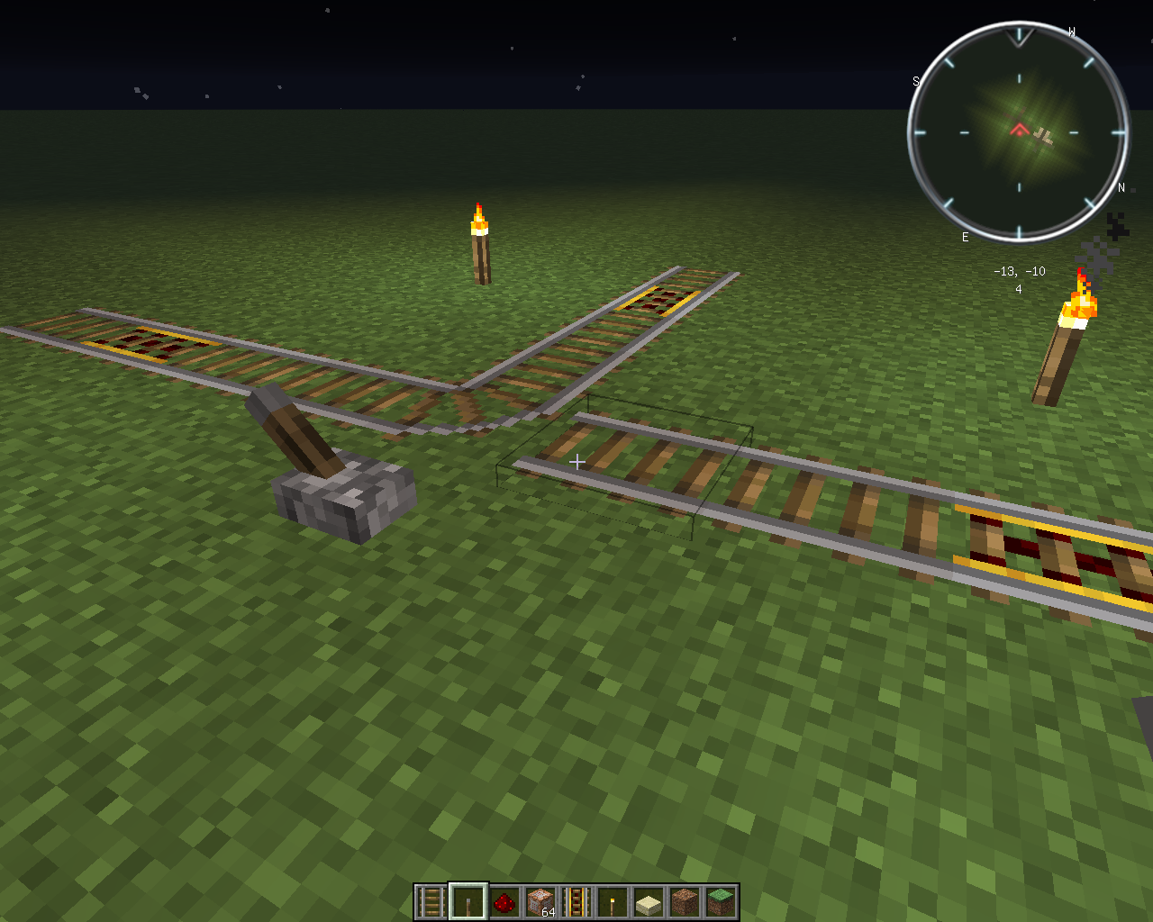 Při jízdě z kteréhokoliv směru na napájené koleji, která napájená není, vagón zastaví. Pak můžeme bez vystupování rukou nastavit výhybku do požadovaného směru a ručně (defaultně klávesou W) se rozjet přes křižovatku. Až narazíme na napájenou kolej "pod proudem" (tedy napájenou redstonem), pojedeme už dále sami.