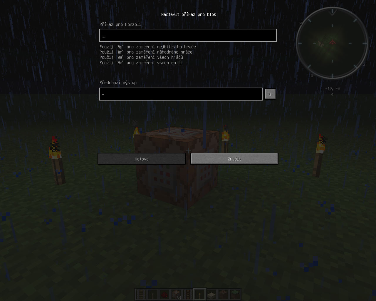 V Minecraftu bohužel neexistuje něco jako bezdrátový přenos signálu, který by vzdálené ovládání výhybek velmi zjednodušil. Hledal jsem, čím bych to mohl nahradit a jako jediná možnost se mi jeví použití příkazového bloku (command block). Dále budu pro zjednodušení uvádět jen zkratku CB.