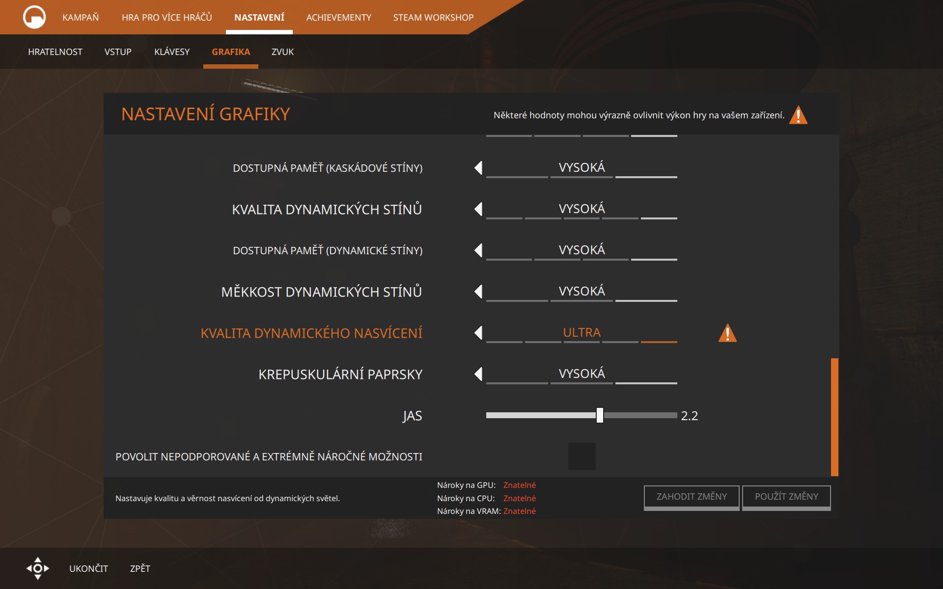 Opraveno - nastavení grafiky, nyní jsou viditelné i nápovědné texty, vliv na hardware a je možno zapnout extrémní nastavení