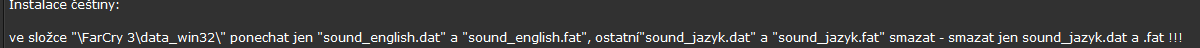 :i: Aha. Teď to čtu pořádně (FC3). Na konci vidím větu: "Čeština se ve hře aktivuje pomocí malé změ…