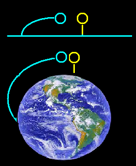 I když je Země kulatá, dopadnou stejně, padají směrem ke stejnému hmotnému středu.