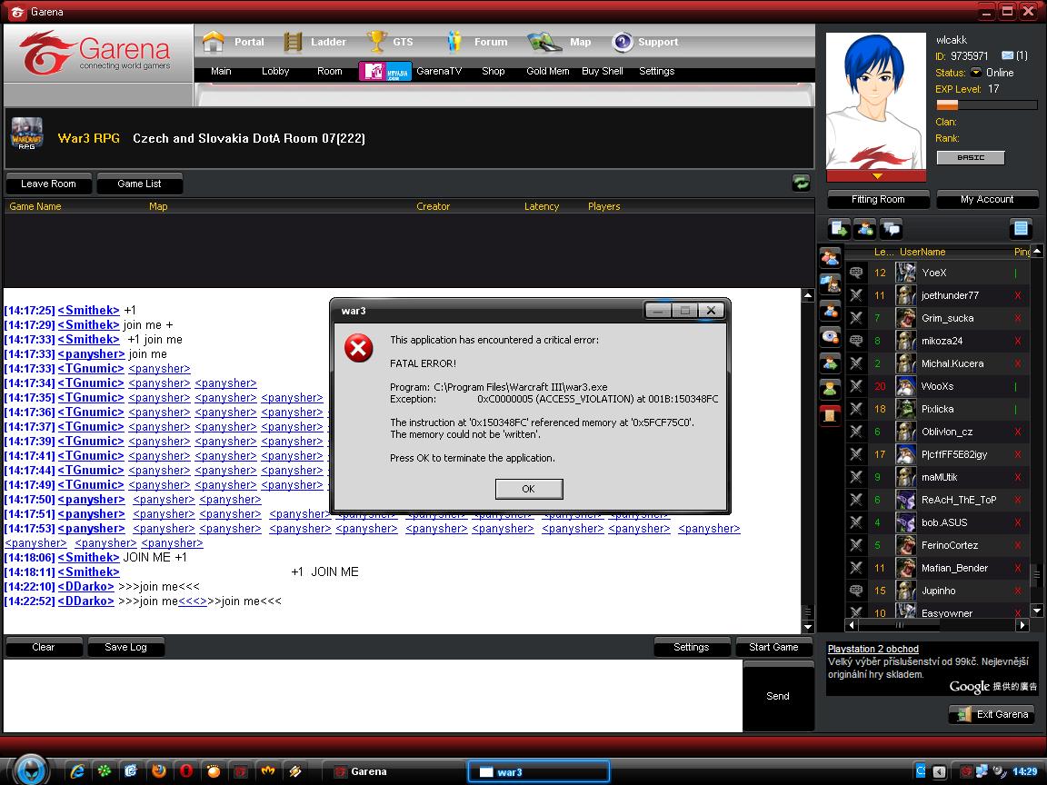 Mam origo Warcraft 3. Celkem často se mi stava ze kdyz hraju tak mi po cca 5min hry hodi war tuto chybu a ukonci se. Nevite cim to muze byt?