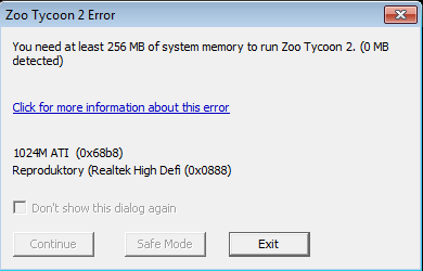 zoo tycoon 2 chyba s pamětí