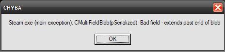 http://supportwiki.steampowered.com/wiki/Error:_St eam.exe_%28main_exception%29:_CMultiFieldBlob%28pS erialized%29:_Bad_field_-_extend_past_end_of_blob