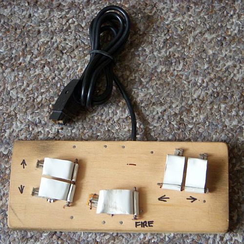Takže jak všichni poznali, je to joystick (spíš jakýsi gamepad) domácí výroby. A je určený pro počítač Didaktik M - i když je konektor mizerně vidět, má tak charakteristický tvar, že to jde poznat.