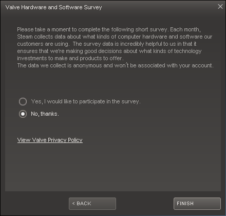 Spíše by mě zajímalo, zda se tenhle "výzkum" dělá u těch, co souhlasili, při každém spuštění Steamu - a kde to případně zapnout/vypnout. Osobně o takovou sw špionáž ve svém PC vůbec nemám zájem; je jim po tom ho*no :-x