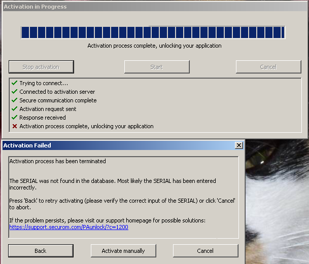 Sériové číslo, uvedené ve Steamu prostě není platné. Nefunguje ani manuální aktivace.