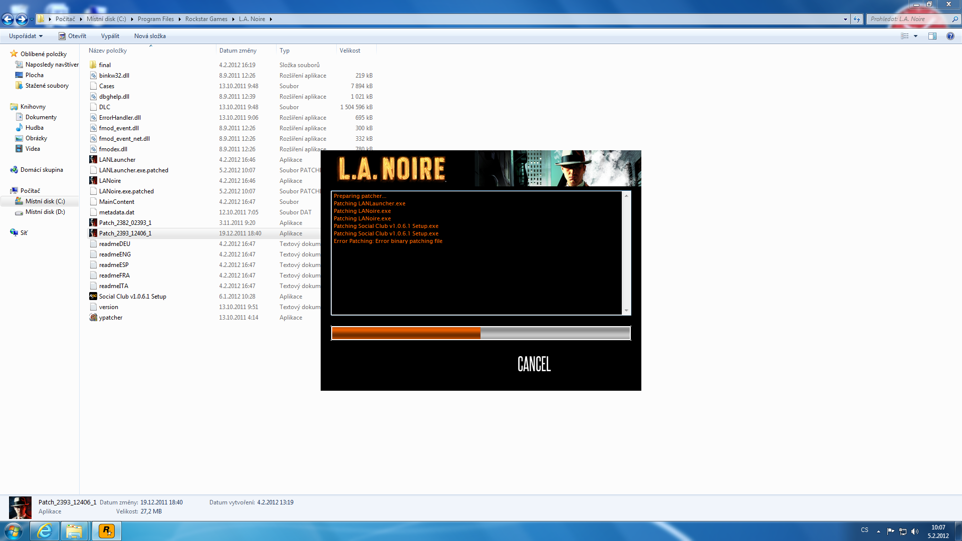 Google říká: http://la.noire.cz/novinka-176-jak-vyeit-problmy-s -patchem.html http://www.czechgamer.…