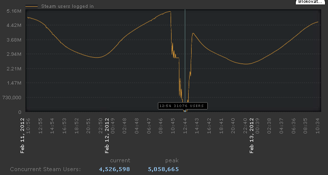 Počet připojených hráčů spadl z pěti miliónu na několik desítek tisíc (dle 48 hodinového grafu). Trvalo to zhruba hodinu-dvě.