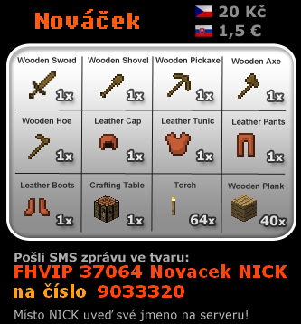 FHVIP 37064 Novacek NICK na čislo 9033320 http://www.gamesites.cz/minecraft/pvp/balik/newbie .png