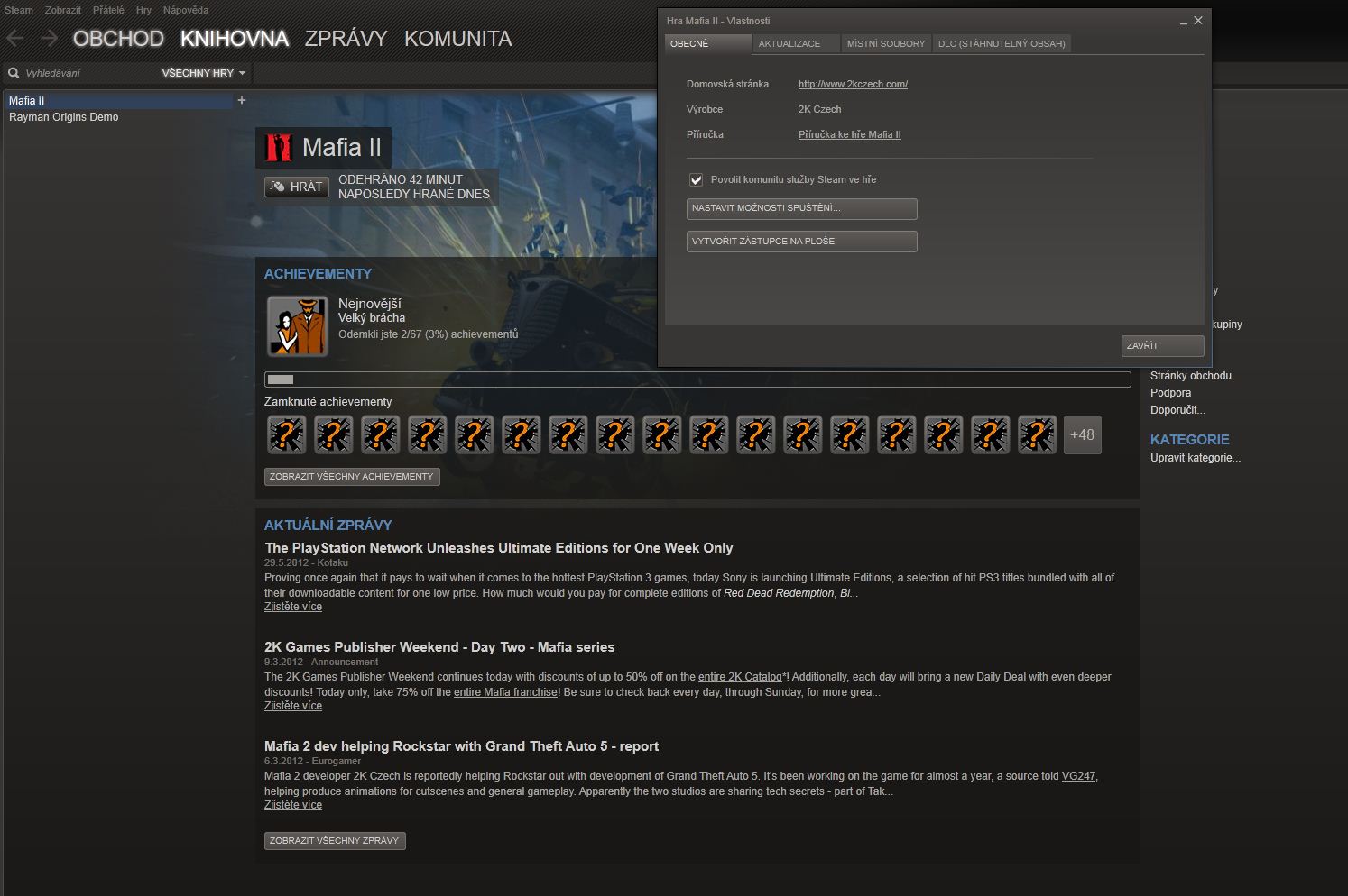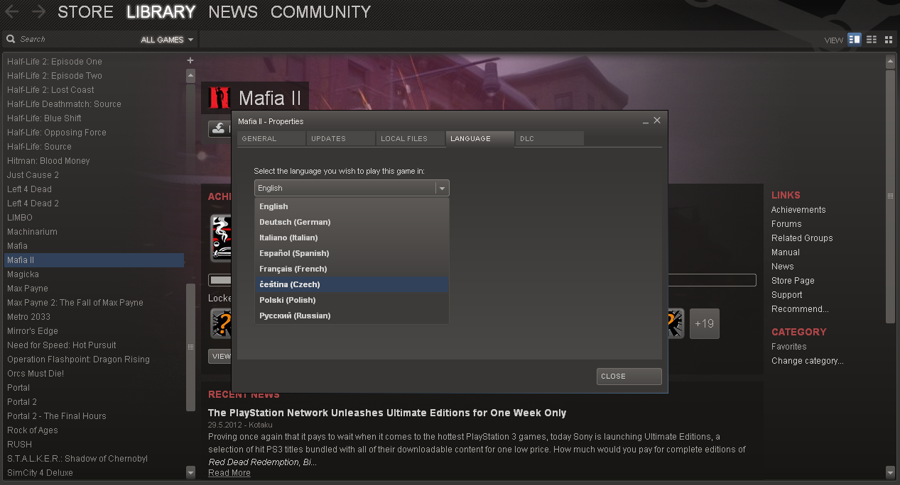 Mafia II je svázaná se Steamem, češtinu si tedy nastavíš tam: