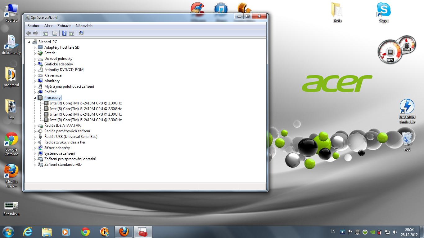 Právě že správce zařízení ukazuje 4 procesory že tam mám ale když v everestu najdu cpu tak ukazuje jen první cpu a druhé cpu a né čtyří to stejné ve správci ůloh jen dvě