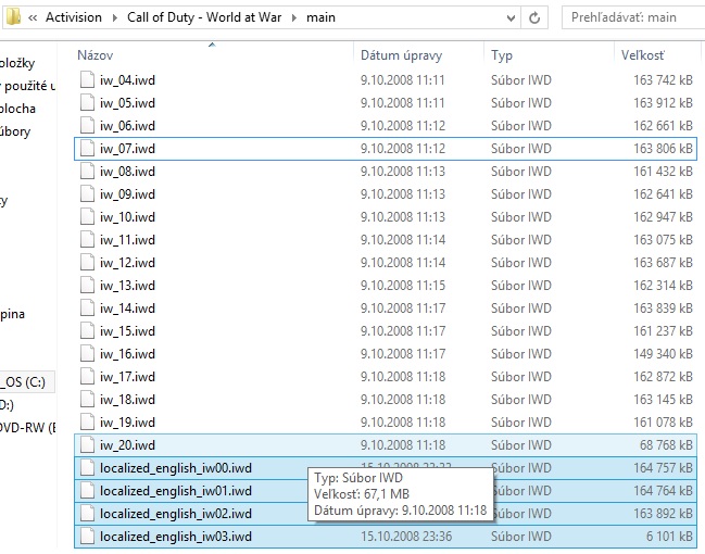 3. Otevřeme složku main (C:\Program Files\Activision\Call of Duty - World at War\main) a smažeme tyto soubory: