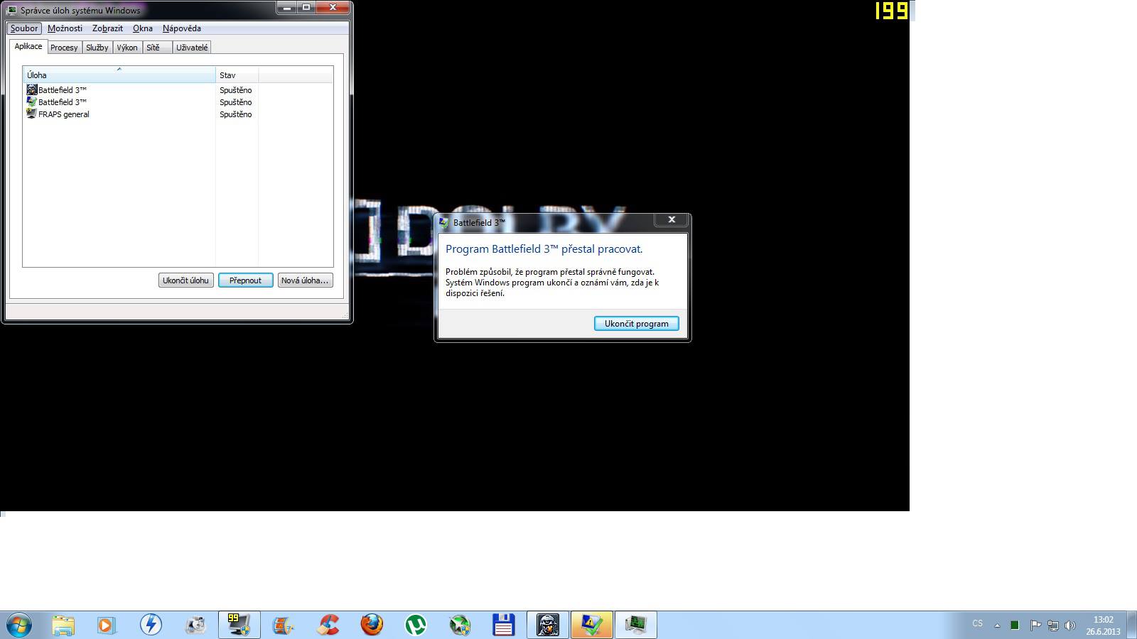 Zdravim potreboval bych nejakou uzitecnou radu co udelat kdyz vam pri hre BF3 nebo MOH:Warfighter hardwer nastavi grafiku na high az medium a kdyz to sam prenastavim tak mi to v pohode chodi na ultra ale asi po 20 minutach mi windows 7 home premium 32 bit napise program prestal pracovat. Dela mi to jen u tehle her a vubec nevim proc. Rozjedu na tom i Crysis 3 na high setting,Max Payne 3 na Very High s vypnutym vyhlazovanim (MSAA) a teselace.