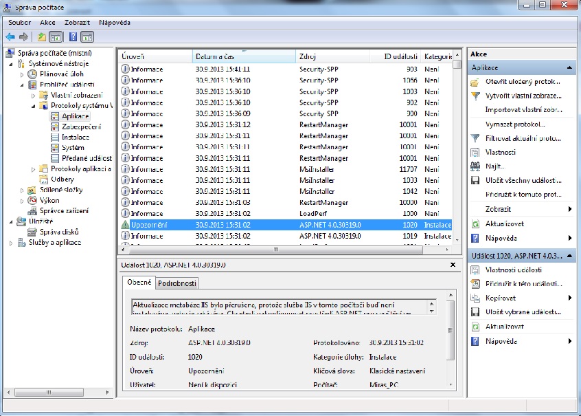 3. Není záznam v eventlogu (Prohlížeč událostí) s časem okamžiku pádu?