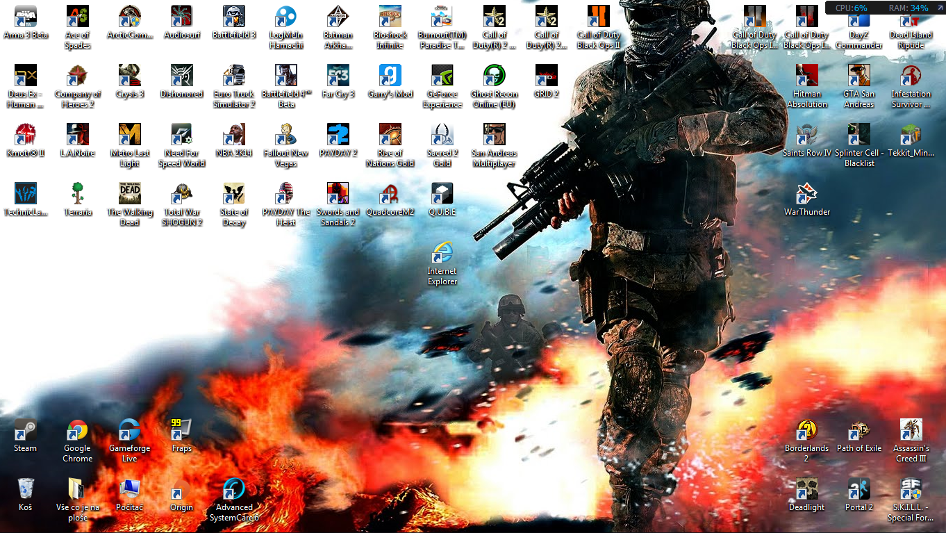 Ahoj chtěl bych doporučit nějakou hru právě ted jsem dohrál AC3 po 5 a zrovna před 10 min Far Cry 3 6x no mám v kompu toho celkem dost ale nevim co mám hrát protože vše mám dohrané a rád by sem si zahrál něco nového dám sem foto plochy a steamu no a podle toho my řeknete co vás bavilo a co tam nemám jo a hororové hry fakt nechci je tam plocha steam uplay origin