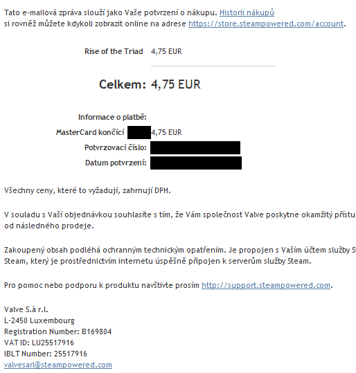Je ještě další možnost. Přece po každém nákupu dostaneš na mail informaci od Steamu, kde je i číslo…