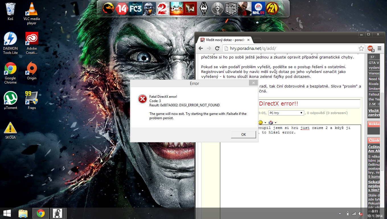 - Zkus tu hru preinstalovat a zaktializovat DirectX, ale muze jít (jde li o hru pres torrent) nekym predelaná a problem muze pochazet primo z té hry.
