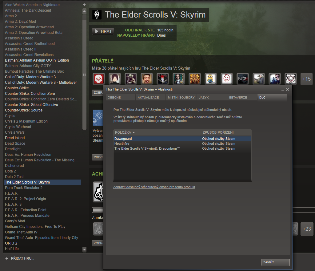 jak už vyplývá z popisu - nemůžu ve hře najít DLC - jak Downguard, tak Hearthfire a asi i Dragonborn(ten nevím, co dělá). Nejdřív jsem si říkal: "To se časem otevře". Kamárádům to normálně funguje a v těch třech městech jim normálně nabízí postavit dům a po 10. levelu si pro ně z Downguardu přišli. Mně se ale nic takovýho neděje a to jsem level 49, jako kdybych hrál normální Skyrim bez DLC, přitom jsem si kupoval tu Legendární edici za 13€ ve slevě. Ty DLC jsou normálně ve vlastnostech hry a hra má přes 8 GB(což je myslim trochu víc než u normální hry).