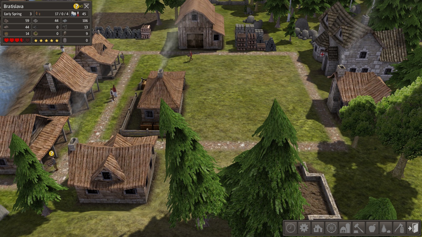 Jak to pokračuje, když se podaří vystavět pěkná, soběstačná vesnice. Zemědělství/rybolov funguje, řemesla taky, panuje spokojenost, rodiny se rozmnožují. Ale co suroviny? Dřevo, kámen, železo? Stromy se snad dají zasadit, ale ty neobnovitelné zdroje co? Přestěhovat vesnici jinam nebo těžit na druhém konci mapy? Nebude to daleko? Založit sběrný dvůr?