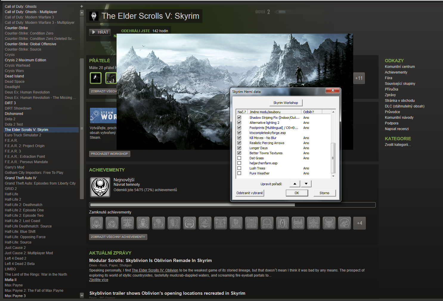 tak jsem se po pořízení nového PC rozhodl si trochu zkrášlit Skyrim, dostat z něho pryč tu zašedlost. Zkusil jsem kombinaci těchto modů(v příloze jsou screeny), hra vypadá pěkně, barevněji a vůbec lépe. I tak si ale myslím, že by to šlo ještě o něco zlepšit, nevím ale, co s čím a jak nakombinovat, nebo jestli sáhnout jen po nějakém jednom ultra modu. Co myslíte? Jaká kombinace modů se vám osvědčila? Nemusí být ani ve workshopu.