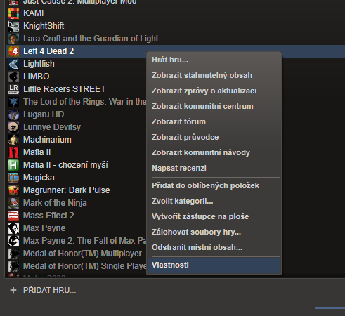 já totiž zvolil přidat hru nepatřící do služby steam a tím pádem pokud dám vlastnosti objeví se kolo…