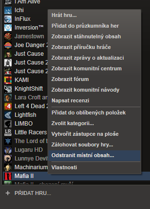 Ty nemáš u Mafie 2 na Steamu "Odstranit místní obsah"?
