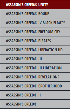 Jde to takhle: AC1, AC2, Brotherhood, Revelations (tyto 2 díly někdo bere jako DLC, ale jsou to plnohodnotné díly). Poté přichází AC3 a s ním i Liberation, který ale není nijak důležitý pro další děj. Pak je tu AC4, což je poslední plnohodnotný díl.