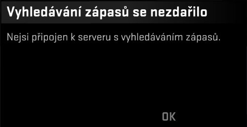 CS:GO "vyhledávání zápasů se nezdařilo"