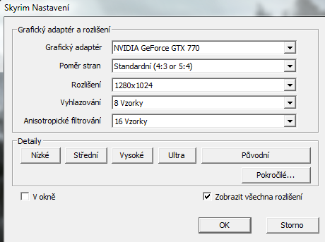 Skyrim normálně zapnu, ale spustí se mi v okně (hádám 640x480) a nikde nemůžu najít nastavení. Na netu jsem našel, že se hra nastavuje v hlavním menu při vypnuté hře, ale tam je pouze "nová hra, načíst, autoři, konec" a při samotné hře jsem v nastavení taky nic nenašel, tak už nevím.