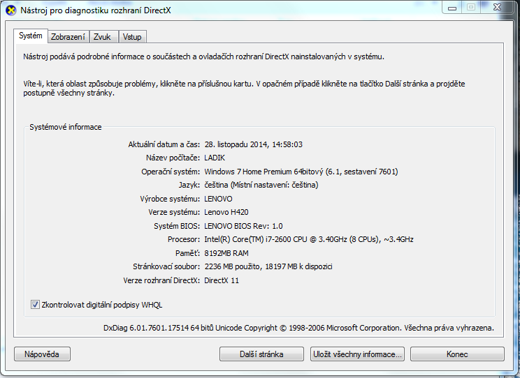 Ano, directx mám aktualizované.