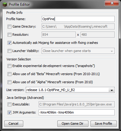 Chtěl bych se zeptat, jak (parametry?) donutit Minecraft využít více RAMky? V launcheru teď nemám žádný parametr, v 32-bitové verzi jsem měl (poslední řádek dole, nad "Play"):