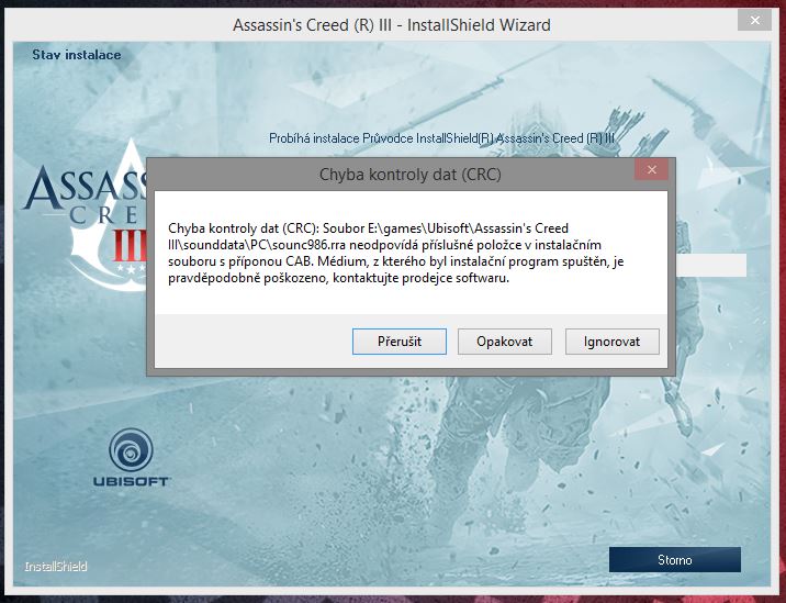 mám problém s CRC(chyba kontroly dat)při instalaci Assasins Creed III na Uplay viz příloha. Hra je originální. Problém se mi nepodařilo vyřešit ani opětovnými staženími z Uplay, ani vypnutím antiviru.