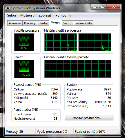 Měl jsem při startu 87 procesů a využití procesoru 7%