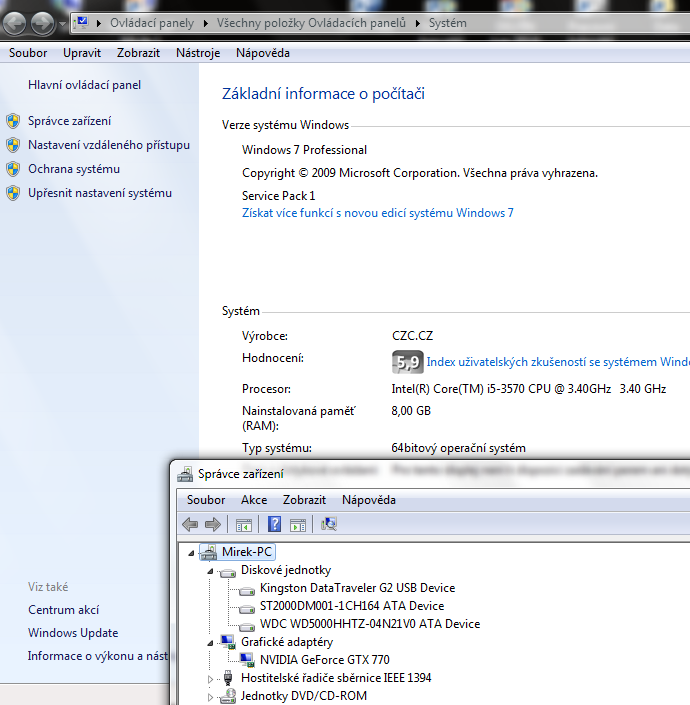 Myslíš, co máš v PC za hardware? Na to jsou různé externí utility (Aida64, snad se to tak jmenuje) nebo něco zjistíš i z Počítač - Vlastnosti a Počítač - Správce zařízení (W7, ale vyšší to snad mají podobně). V příloze vidíš CPU, RAM, grafiku, disky..