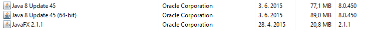A nevím co s tím mám dělat javu mám Java 8 update 45 , Java 8 udate 45 (64-bit) , JavaFX 2.1.1 . Děkuju za každou pomoc .
