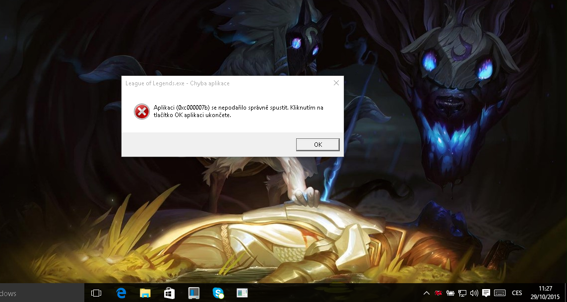Čau mám problém s hrou League of Legends do clienta se dostanu normálně ale když , vyberu postavu a hra skončí pick hodí mi to tenhle error a nejde jít dál zkoušel jsem všechno , nainstalovat directi, scannow v cmd,visual c++ mám od 2005 do 2013 , počítač je čistě přeinstalovanej windows 10 pro 64 bit.