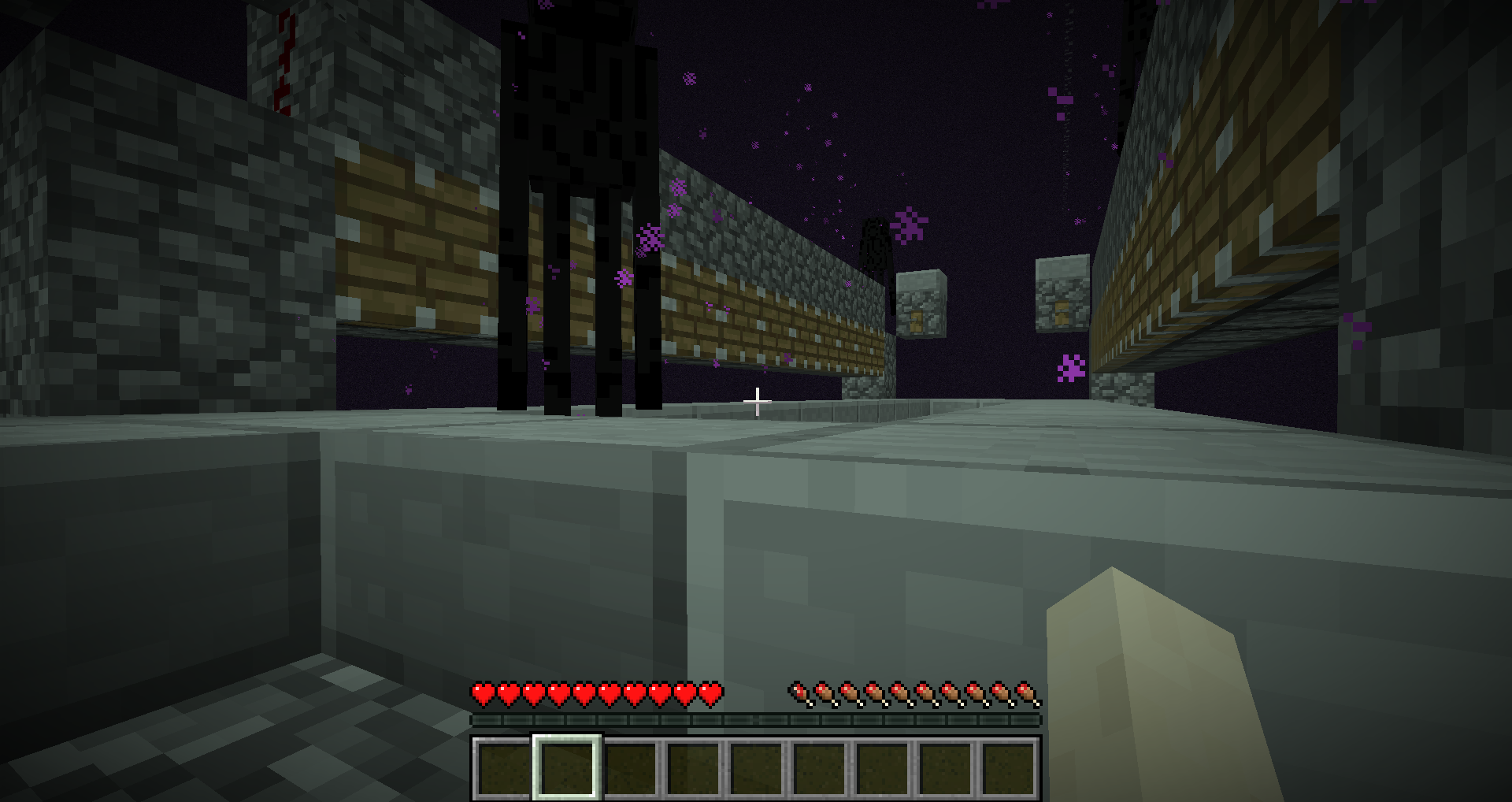 Endermani se mi na farmě i v Endu spawnují normálně (se mi zdá), a to ještě můžu dostavět další patra. Je potřeba je donutit, aby se spawnovali jen tam, kde je to okamžitě shodí dolů. Všude jinde mám buď halfblocky nebo vodu (tam se nemůžou teleportovat. Farmu mám tak 300 metrů od ostrova, kde jsem zlikvidoval draka.