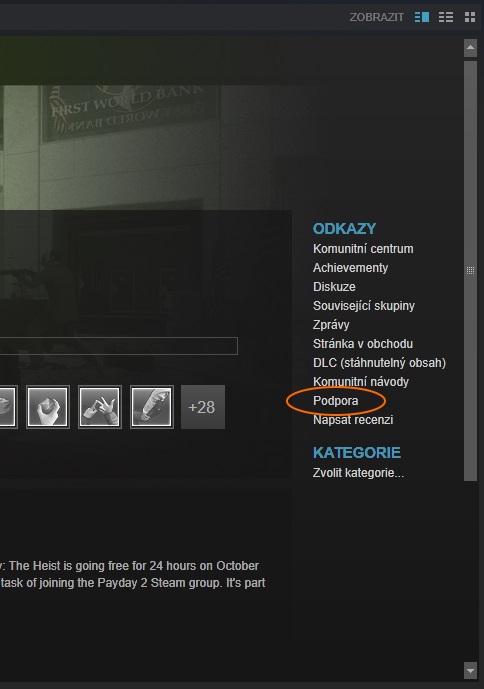 V Knihovne kliknes na hru a vpravo ve Steam okne mezi odkazama vyberes podporu.