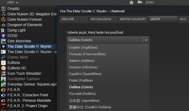 A kde jsi Skyrim kupovala? Protože v Česku na Steamu nelze koupit verzi bez češtiny.