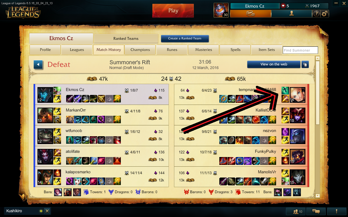 ale když se podívám do jeho/její match history… Ekmos 12.03.2016 20:06 |