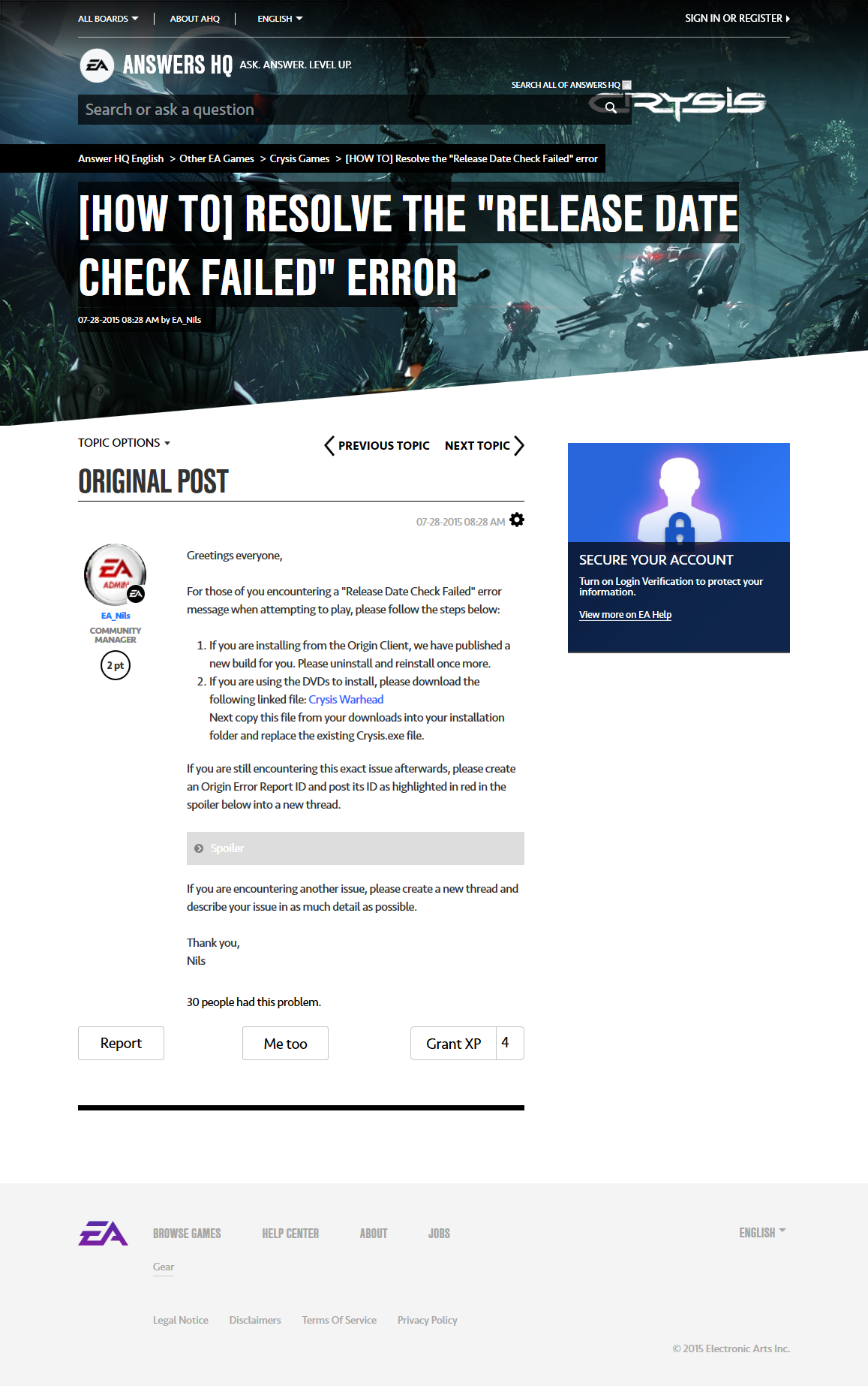 http://answers.ea.com/t5/Crysis-Games/HOW-TO-Resol ve-the-quot-Release-Date-Check-Failed-quot-error/t d-p/4695635