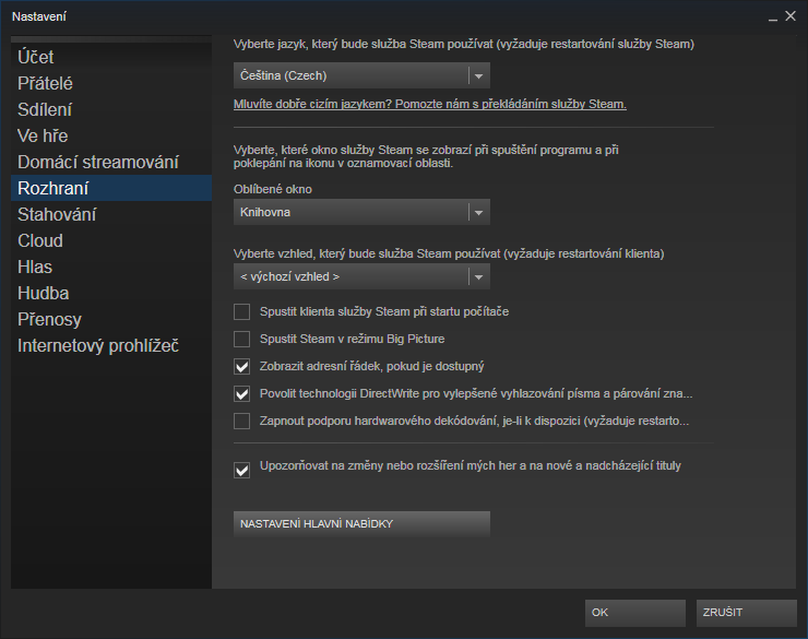 Po spuštění Steamu jsem v knihovně. S tímto nastavením:
