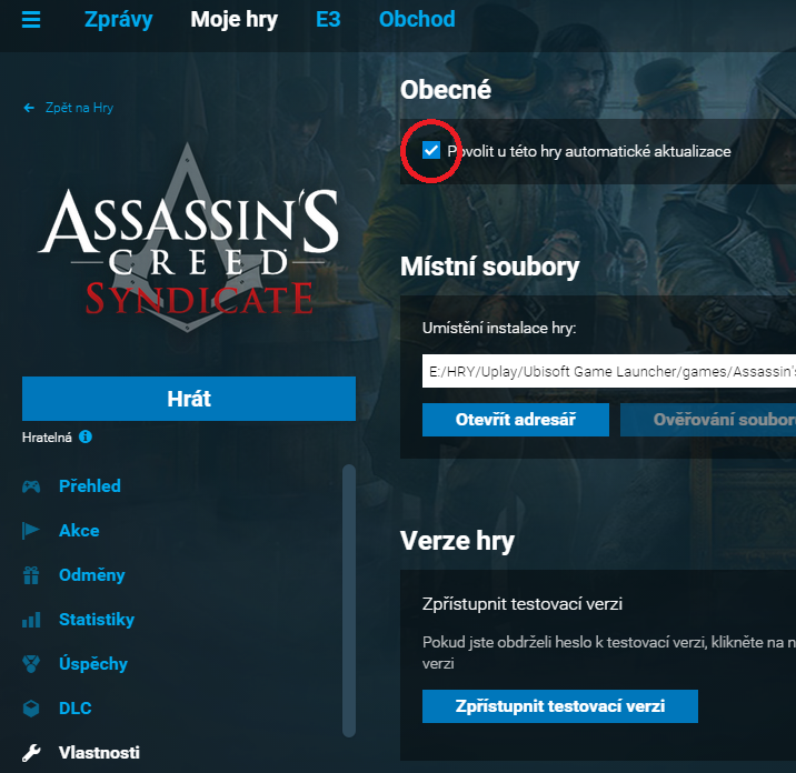Zdravím, když si na Uplayi stáhnu Assassin's Creed Bratrstvo, hra je komplet v angličtině, stáhnu CZ z netu, ale diakritika je v prd** což nechápu. Ale když si hru nainstaluju z DVD, jehož distributorem je Playman co má českou verzi, stáhne si patch, vše je v cajku. Ale když chci konečně spustit tu hru, najede mi Uplay, a chce stáhnout komplet znova tu hru, samozřejmě, do pitomé AJ. Všiml jsem si, že pod možnosti "Stáhnout" je možnost "Vyhledat nainstalovanou hru", klikl jsem, a potvrdil složku-> D:\Program Files\Ubisoft\Assassin's Creed Brotherhood. Prsklo mi do očí(viz. obrázek).