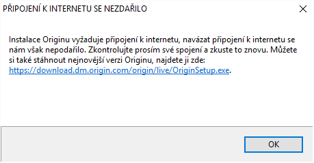 Chtěl jsem si nainstalovat Origin. Po instalaci (z všemožných zdrojů, od oficiálního, přes ty odjinud) mi vždy vyskočilo toto okno: