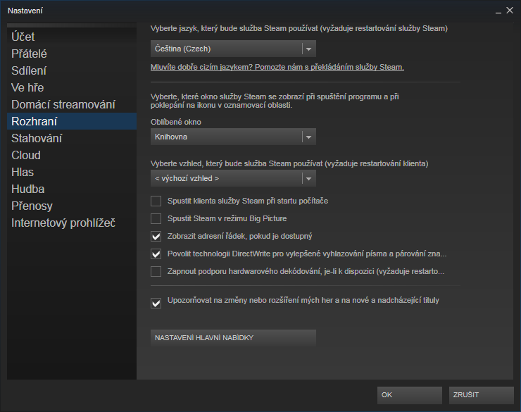 jednou jsem byl na steamu a zaujala mě jedna možnost - big picture mode (což je jiný vzhled steamu dělaný pro uživatele se steam controllerem). Tak jsem tento mod zapnul, ale chtěl jsem jít zpět do normálního steamu, což jsem udělal tím, že jsem kliknul na rohové tlačítko vypnutí a dal jsem možnost "exit big picture mode" a pomohlo to. Jenže druhý den jsem opět zapnul steam a automaticky se mi steam rozběhl v big picture modu. Tak jsem ho zase vypnul a hledal jsem na internetu, jak si ho vypnout. Přišel jsem na to, že v nastavení steamu si můžu tuto možnost zrušit tím, že půjdu do nabídky "interface", dále kliknu na "set taskbar preferences" a tam vymažu fajfku u možnosti "big picture". Ale to nepomohlo. Pořád se mi rozbíhá steam v tom otravném big picture modu a já nevím, co s tím. Prosím o radu, pokud existuje nějaká jiná než reinstalace celého steamu.