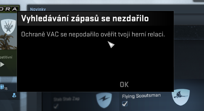 CS:GO - ochraně vac se nepodařilo ověřit tvoji herní relaci