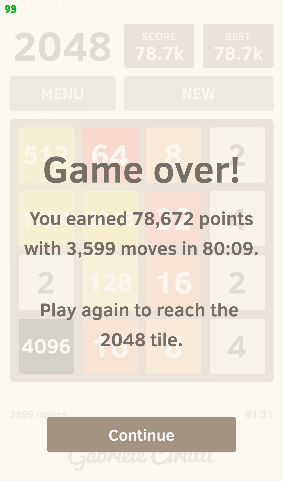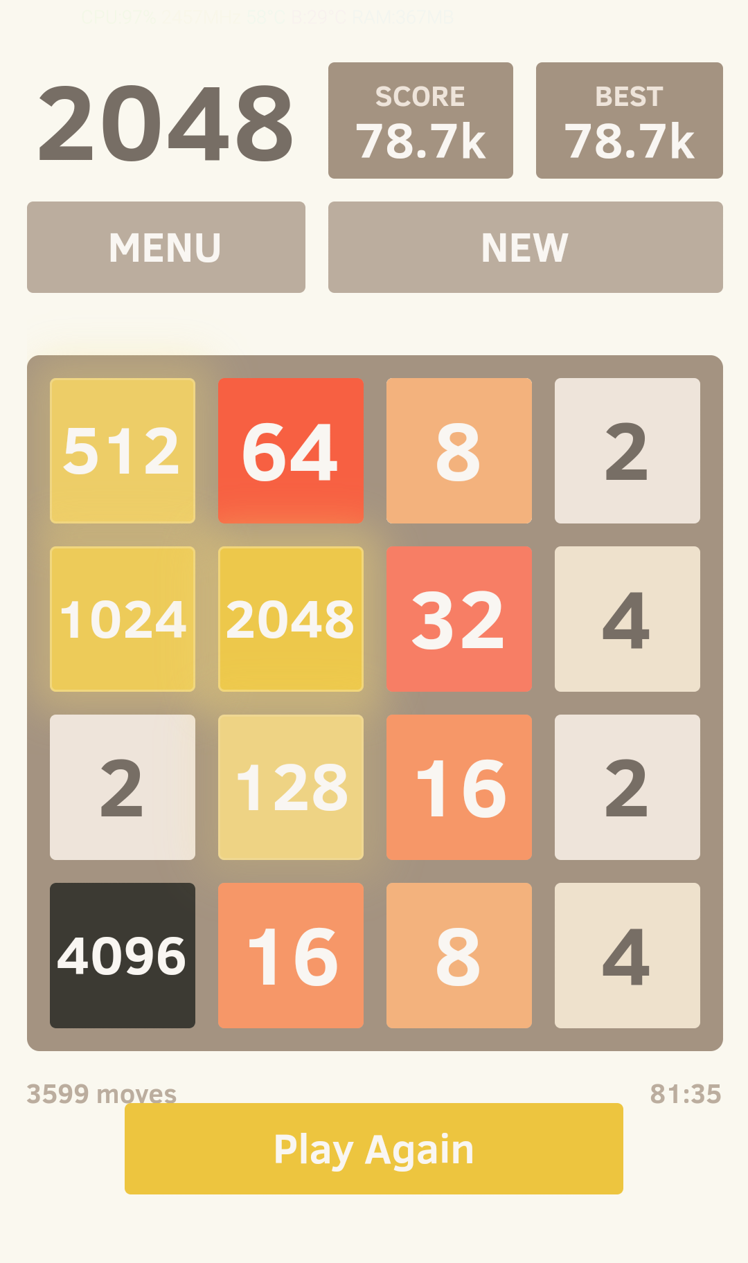 Nicméně hodnoty 2048 jsem nedosáhl..