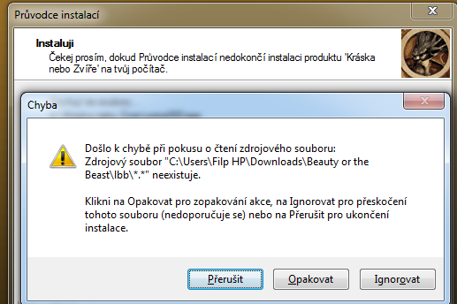 Divné je, že se to snaží instalovat z něčeho staženého z disku C. Možná(?) to tam ale rozbalil instalátor.